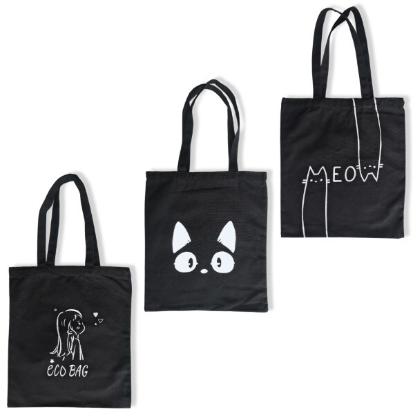 Сумка-шоппер хлопковая 35*40 см с ручками Чёрная с белым рисунком (3 вида) 520143