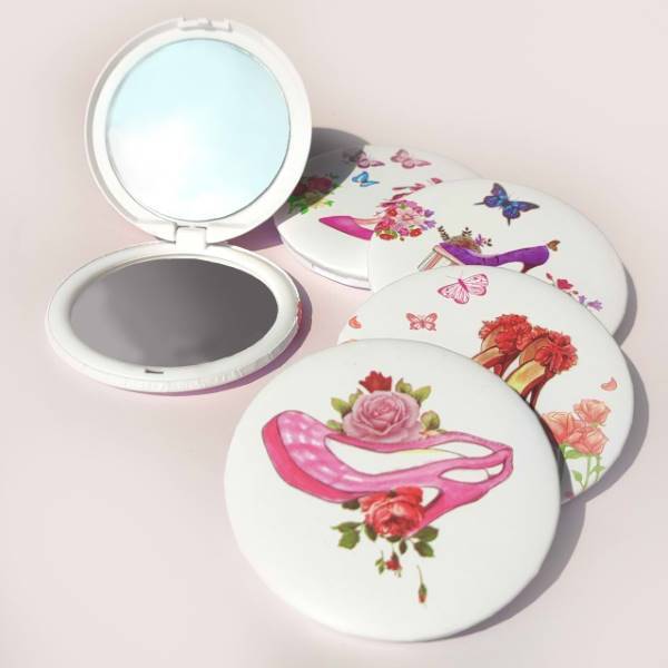 Зеркало компактное круглое Цветы с туфлями на белом (7 см) 32196